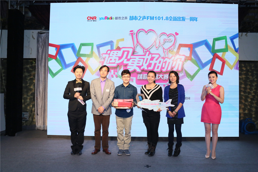 中央人民廣播電臺(tái)音樂(lè)節(jié)目中心主任毛才桃、夏威夷航空市場(chǎng)營(yíng)銷總監(jiān)王金坤一同為獲得大獎(jiǎng)的情侶頒獎(jiǎng)