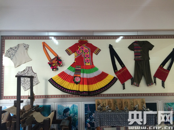 云南省昆明市盤龍區(qū)金星社區(qū)服務(wù)中心展示的少數(shù)民族服飾。