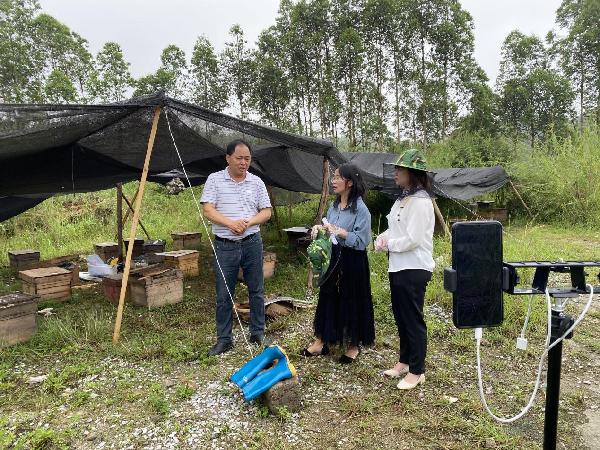 央廣網(wǎng)南寧5月24日消息(記者黃月芬 通訊員班曉敏)近日,由廣西南寧市上林縣經(jīng)濟(jì)貿(mào)易和信息化局、上林縣農(nóng)業(yè)農(nóng)村局指導(dǎo),南寧市益農(nóng)信息社運(yùn)營(yíng)中心、上林縣樂(lè)村淘網(wǎng)絡(luò)科技有限公司和廣西經(jīng)貿(mào)職業(yè)技術(shù)學(xué)院電子商務(wù)教學(xué)團(tuán)隊(duì),在上林縣澄泰鄉(xiāng)象山社區(qū)居民委員會(huì)的象山社區(qū)養(yǎng)蜂合作社示范基地里,進(jìn)行了一場(chǎng)精心策劃的電商直播“帶貨”活動(dòng),上林縣養(yǎng)蜂能手變身“網(wǎng)絡(luò)主播”,利用電商直播平臺(tái)為深山里的蜂蜜插上“翅膀”。