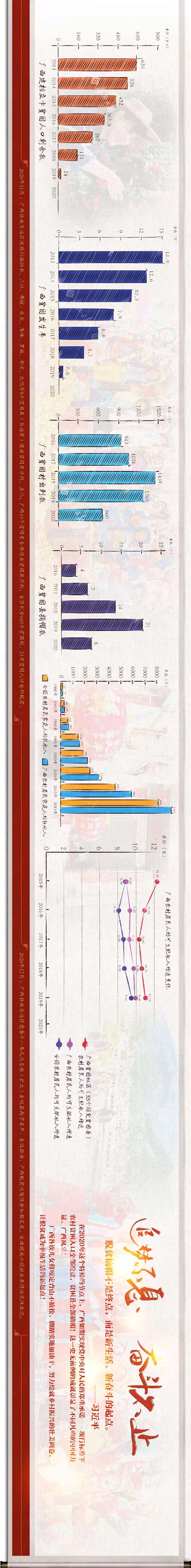 長卷分為“久困于窮”“戰(zhàn)天斗地”“成就輝煌”三個篇章,既著眼于宏大敘事,也囊括了“豬籠洞”“天等不等天”等脫貧特寫,以及黃文秀、陳開枝等戰(zhàn)貧人物的微觀特寫;既包含了30多年來“廣西扶貧大事記”時間軸形式的線性梳理,也有展現(xiàn)廣西貧困群眾從行路、飲水、住房、上學(xué)、就醫(yī)、用電、增收的“七難”到行路暢、飲水甜、住房安、上學(xué)便、就醫(yī)惠、用電易、增收快的“七巨變”的場景式鏡頭。