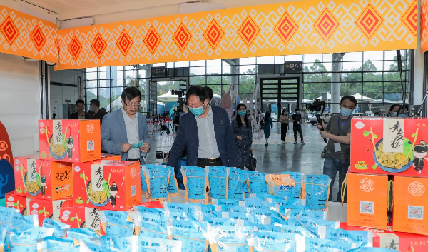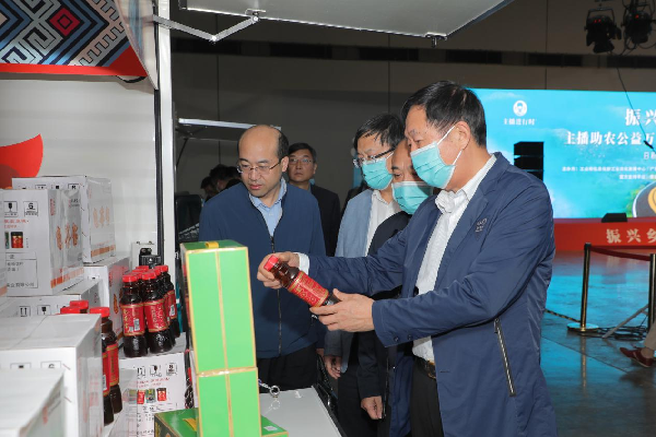 參加啟動儀式的領(lǐng)導(dǎo)參觀直播產(chǎn)品 (央廣網(wǎng)發(fā) 鄭肖君攝)