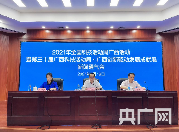央廣網(wǎng)南寧5月20日消息(記者羅蘭)5月19日,廣西壯族自治區(qū)科技廳在南寧召開新聞發(fā)布會。發(fā)布會透露,2021年全國科技活動周廣西活動暨第三十屆廣西科技活動周·廣西創(chuàng)新驅(qū)動發(fā)展成就展(以下簡稱“兩周一展”)將于2021年5月22日-28日在廣西舉行,活動主題為“百年回望:中國共產(chǎn)黨領(lǐng)導(dǎo)科技發(fā)展”,將開展“1個(gè)儀式、1個(gè)展會、10大活動”。