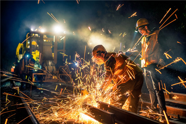 作業(yè)人員正在切割鋼軌 攝影 黃舞杰
