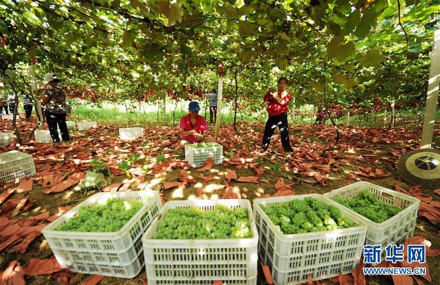 7月30日,果農(nóng)在貴州省玉屏侗族自治縣新店生態(tài)葡萄現(xiàn)代農(nóng)業(yè)園區(qū)采摘水晶葡萄。7月以來,貴州省銅仁市玉屏侗族自治縣種植的水晶葡萄迎來收獲季,果農(nóng)們忙著采摘和搬運(yùn)葡萄供應(yīng)市場(chǎng)。近年來,玉屏縣大力發(fā)展高山生態(tài)水果,實(shí)現(xiàn)黃桃、葡萄、獼猴桃、無花果等特色水果的規(guī);N植,成為山區(qū)農(nóng)民脫貧增收的重要產(chǎn)業(yè)。 新華社發(fā)(楊文斌攝) -