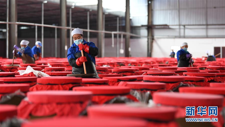 2月13日,在貴州省麻江縣一家紅酸湯生產(chǎn)企業(yè),工人在攪拌發(fā)酵中的紅酸湯。紅酸湯是貴州省黔東南苗族侗族自治州群眾喜愛的一種傳統(tǒng)食品,其制作工藝歷史悠久,以鮮辣椒、西紅柿和生姜為主原料,經(jīng)過清洗、入壇、發(fā)酵等多道工序制作而成。近年來,當(dāng)?shù)卣罅ν苿蛹t酸湯傳統(tǒng)工藝保護(hù)、傳承和創(chuàng)新,紅酸湯的生產(chǎn)向規(guī);F(xiàn)代化、標(biāo)準(zhǔn)化方向發(fā)展,并積極向外拓展市場,產(chǎn)品受到消費(fèi)者青睞。新華社發(fā)(蔡興文 攝)