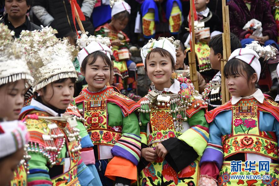 2月14日,在貴州省龍里縣龍山鎮(zhèn)團(tuán)結(jié)村“跳月”場(chǎng),苗族同胞身著盛裝參加“跳月”活動(dòng)。當(dāng)日是大年初十,在貴州省黔南布依族苗族自治州龍里縣龍山鎮(zhèn)團(tuán)結(jié)村,當(dāng)?shù)孛缱迦罕姎g聚一堂,舉行一年一度的“跳月”活動(dòng),歡慶新春。新華社發(fā)(羅顯琴 攝)