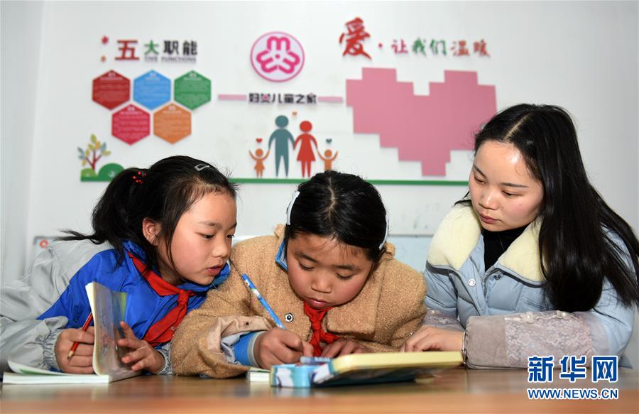 2月27日,在玉屏侗族自治縣平溪街道舞陽移民新區(qū),街道工作人員(右一)在輔導學生做作業(yè)。2018年以來,貴州省銅仁市玉屏侗族自治縣為解決移民新區(qū)小學生放學后無人看管問題,設立“四點半課堂”,組織教師、街道工作人員、大學生等志愿者,為孩子們提供放學后的作業(yè)輔導、閱讀陪伴等服務。新華社記者 楊文斌 攝
