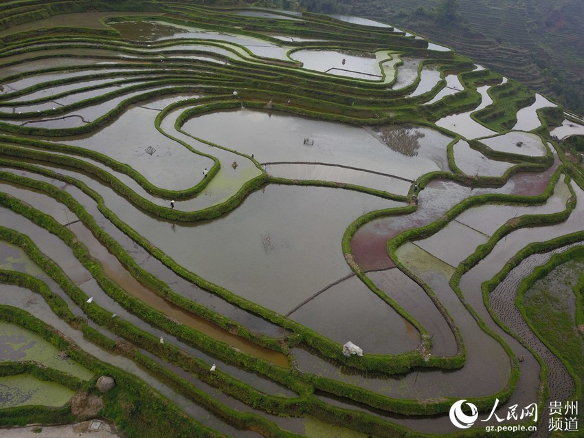 谷雨過后,貴州省黔東南苗族侗族自治州從江縣進入水稻春種大忙時節(jié),彎彎曲曲的層層梯田和辛勤勞作的人們,構成一幅幅美麗的春耕圖。