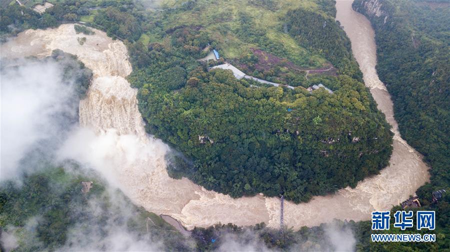 這是2020年9月14日拍攝的黃果樹瀑布(無人機(jī)照片)。連日來,受強(qiáng)降雨影響,貴州黃果樹瀑布流量增大,水流飛瀉而下,氣勢尤為壯觀。新華社發(fā)(陳熙 攝)