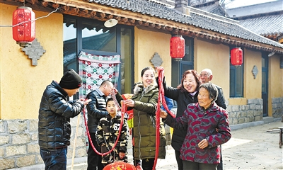 在阜平縣駱駝灣村,村民唐宗秀(前排右一)家的老屋已經(jīng)翻蓋成了6間新房。2016年,她家拿到土地流轉(zhuǎn)金5939元,人均收入4944元,在當(dāng)年底前脫了貧。記者賈恒趙威 攝