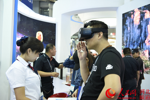 游客在河北展館體驗高科技產(chǎn)品。王雅潔 攝