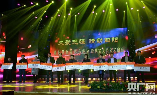 央廣網(wǎng)保定2月1日消息(記者孟曉光 通訊員 郭英焜) “這是心的呼喚,這是愛的奉獻(xiàn),這是人間的春風(fēng),這是生命的源泉……”日前,河北省曲陽縣慈善協(xié)會成立暨扶貧義捐文藝演出在曲陽永寧會堂舉行,在“大愛無疆 情動曲陽”扶貧義捐現(xiàn)場,社會各界當(dāng)場捐款2597.6966萬元。