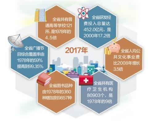 省統(tǒng)計(jì)局提供的數(shù)據(jù)顯示,改革開(kāi)放40年來(lái),全省社會(huì)事業(yè)取得長(zhǎng)足進(jìn)步,教育、科技、文化、衛(wèi)生事業(yè)突飛猛進(jìn),新聞出版、廣播電視業(yè)欣欣向榮,體育事業(yè)成就矚目。