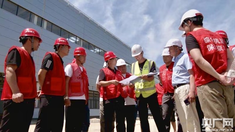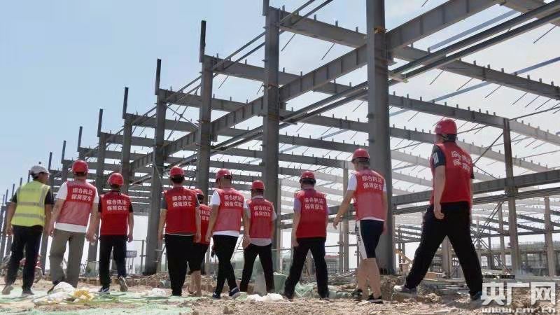 身穿紅馬甲的河北京車(chē)造車(chē)基地項(xiàng)目建設(shè)施工保障隊(duì)伍。