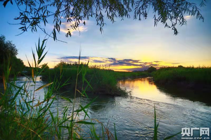 夕陽下的濕地公園景色宜人(濕地公園供圖)