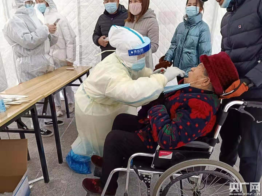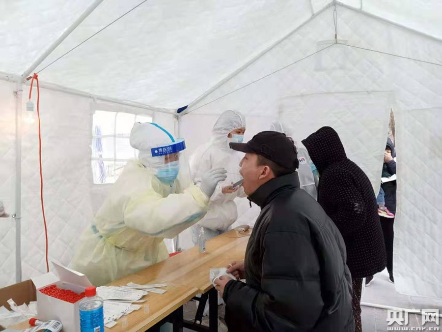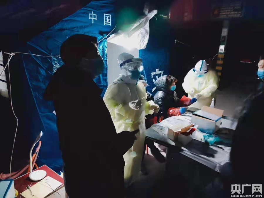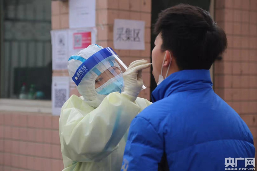 華北理工大學(xué)附屬醫(yī)院支援石家莊醫(yī)療隊(duì)員核酸采樣(央廣網(wǎng)發(fā) 通訊員供圖)