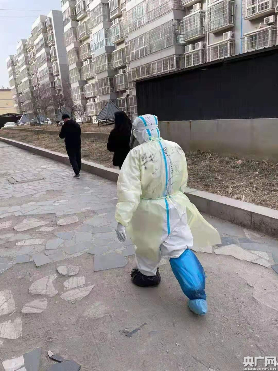 這兩天是河北20年以來(lái)氣溫最低的幾天,隊(duì)員身著防護(hù)服,透過(guò)朦朧不清的護(hù)目鏡,登記著一條條人員信息,凝結(jié)著霧氣形成小水滴,吧噠吧噠地落在紙上。一天下來(lái),大家凍得手都伸不直,帶著手套的手一用手消,就加重了冰冷的感覺,刺骨的涼。有的女隊(duì)員因?yàn)樯砥,身體的不適在寒冷的冬季里尤為明顯,但是沒有一個(gè)退縮。
