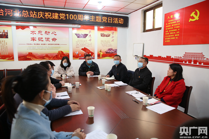 在西柏坡鎮(zhèn)北莊村村委會,河北總站參加活動的全體人員集體學習習近平總書記黨史學習教育動員大會講話精神及總書記給北莊村全體黨員的回信精神。(央廣網(wǎng)發(fā) 河北總站供圖)