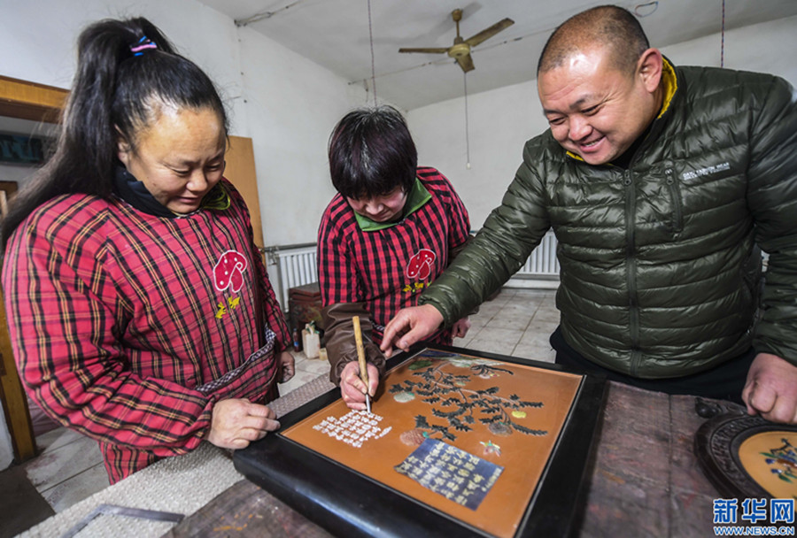 1月16日,河北省廊坊市廣陽(yáng)區(qū)九州鎮(zhèn)南漢村手藝人(右)向幫扶對(duì)象講解鑲嵌技巧。河北省廊坊市廣陽(yáng)區(qū)增強(qiáng)精準(zhǔn)扶貧的幫扶能力,通過與百姓結(jié)對(duì)子,為百姓找路子,幫助群眾脫貧致富。黨員干部、致富能手與貧困戶結(jié)對(duì)子,扶貧隊(duì)伍通過一對(duì)一入戶的形式,詳細(xì)了解幫扶農(nóng)戶的家庭現(xiàn)狀、收入來源等基本情況,根據(jù)幫扶農(nóng)戶的實(shí)際情況制定“一戶一策”,向幫扶農(nóng)戶提供脫貧致富的方法,在項(xiàng)目、資金、技術(shù)等方面提供全方位跟蹤服務(wù)。新華社記者 李曉果 攝 -