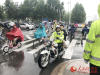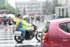 圖為時值中考第二日,石家莊交警冒雨護送中考考生前往考點。王雅潔 攝 -