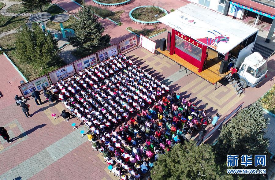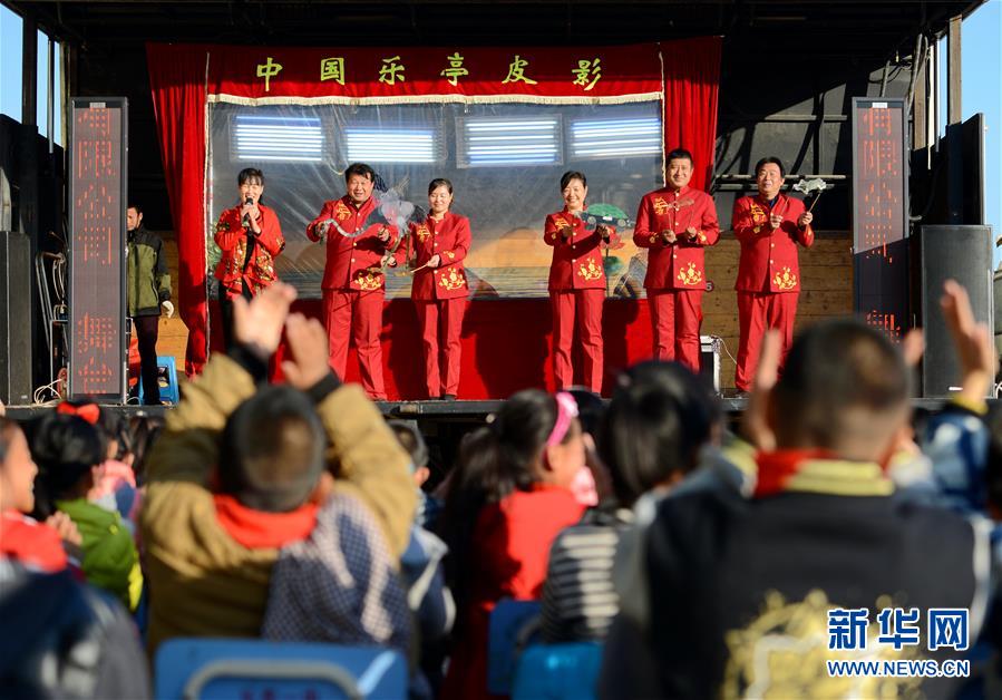 11月21日,河北省樂亭縣汀流河中心小學(xué)學(xué)生在文化大篷車前觀看樂亭皮影劇目表演。新華社記者 牟宇 攝 今年以來,河北省樂亭縣文化、教育部門啟動(dòng)“文化大篷車校園傳非遺”活動(dòng),通過在城鄉(xiāng)中小學(xué)舉行非遺展演、非遺項(xiàng)目傳承人現(xiàn)場授課等方式,讓學(xué)生們接受傳統(tǒng)文化教育。 -