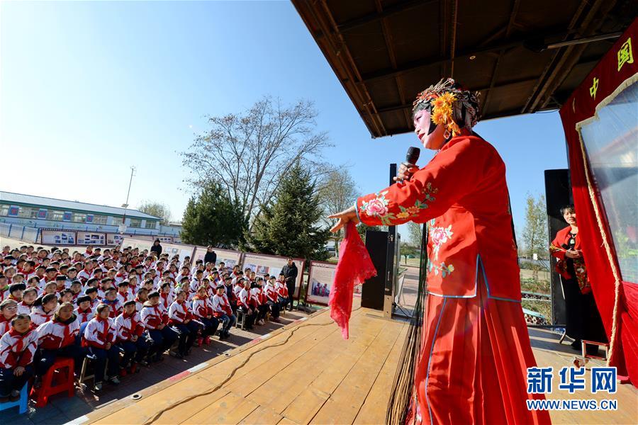 11月21日,評(píng)劇演員在河北省樂亭縣汀流河中心小學(xué)為學(xué)生們表演。新華社記者 牟宇 攝