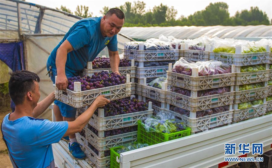 7月2日,河北省棗強(qiáng)縣唐林鎮(zhèn)邵府村村民將剛采摘的葡萄搬運(yùn)到水果商的收購(gòu)車(chē)上。近年來(lái),河北省棗強(qiáng)縣在實(shí)施產(chǎn)業(yè)扶貧過(guò)程中,積極引導(dǎo)農(nóng)民調(diào)整農(nóng)業(yè)產(chǎn)業(yè)結(jié)構(gòu),因地制宜發(fā)展大棚葡萄種植,開(kāi)辟出了一條脫貧創(chuàng)收新路徑。目前,該縣大棚葡萄種植面積已達(dá)5000余畝,收獲的葡萄暢銷(xiāo)京津冀市場(chǎng),3000余貧困群眾借此脫貧。新華社記者李曉果攝