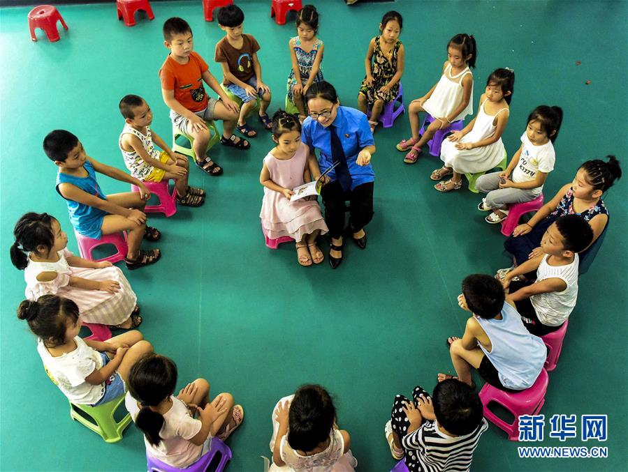 8月13日,河北省阜城縣人民檢察院檢察官為小朋友們講解安全防范知識。