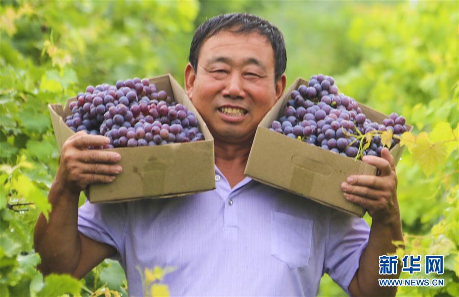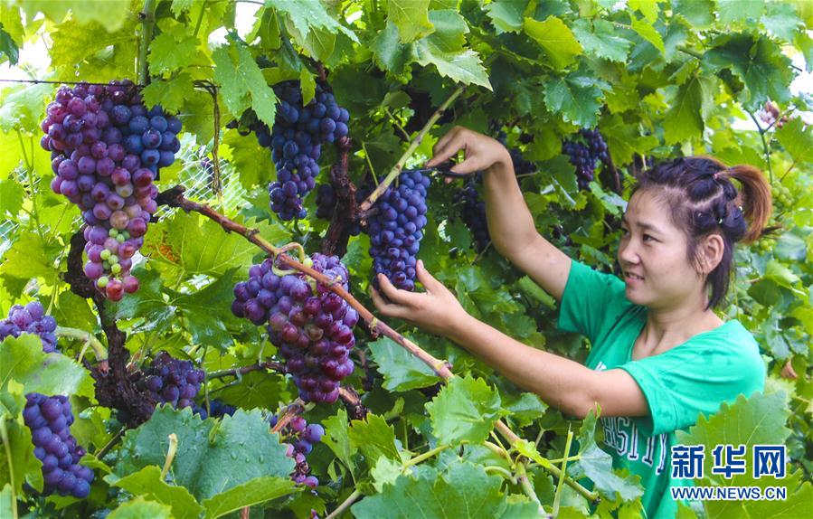 8月14日,在河北永清縣三圣口鄉(xiāng)冰窖村,游客在采摘葡萄。河北省永清縣三圣口鄉(xiāng)冰窖村是該縣有名的葡萄種植專業(yè)村。近年來(lái),該村大力推廣引進(jìn)葡萄種植新技術(shù)、新品種,引導(dǎo)農(nóng)民種植錯(cuò)季葡萄,實(shí)現(xiàn)了每年4月至9月都有不同品種的葡萄上市。目前全村種植葡萄5000余畝,年產(chǎn)值達(dá)3000余萬(wàn)元。新華社記者李曉果 攝 -