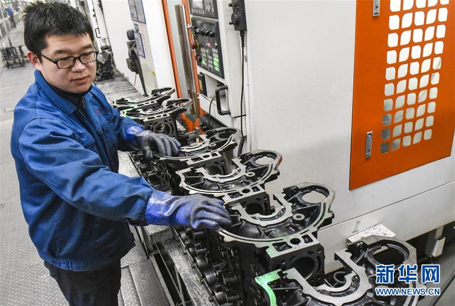 12月15日,在河北省深州市的一家公司,工人在加工生產(chǎn)發(fā)動機缸體。機械制造業(yè)是河北省深州市的傳統(tǒng)產(chǎn)業(yè)。