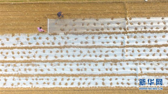 2月25日,山東省聊城市茌平縣賈寨鎮(zhèn)侯樓村的村民在田間給韭菜覆蓋薄膜(無人機拍攝)。 春日時節(jié),人們忙于生產(chǎn)勞動,為新一年的豐收和美好生活打下基礎(chǔ)。 新華社發(fā)(趙玉國 攝)