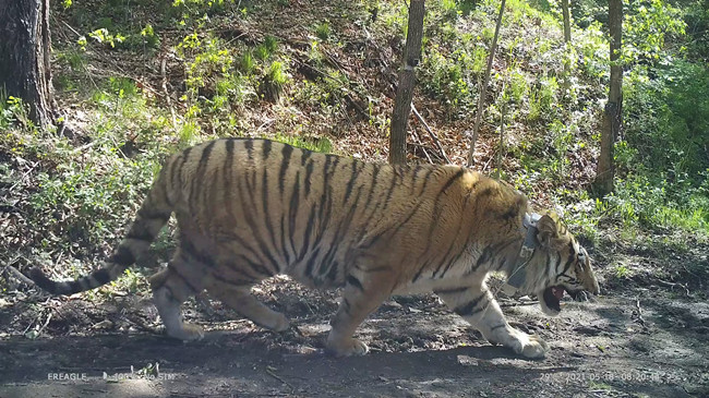 “從釋放地的黑龍江省穆棱市到牡丹江地區(qū)的東京城林業(yè)局,吉林省的汪清縣、再到虎豹公園區(qū)域內(nèi),它的行程近四百公里,活動(dòng)面積也近千平方公里。”中國(guó)橫道河子貓科動(dòng)物飼養(yǎng)繁育中心的總工程師劉丹在直播間介紹,這說(shuō)明“完達(dá)山1號(hào)”的活動(dòng)半徑還是比較大的,它還沒(méi)有完全的定居下來(lái),仍處于游蕩的狀態(tài)。這些都符合一個(gè)亞成體的老虎獨(dú)立分窩擴(kuò)散,尋找自己領(lǐng)地的生活規(guī)律。