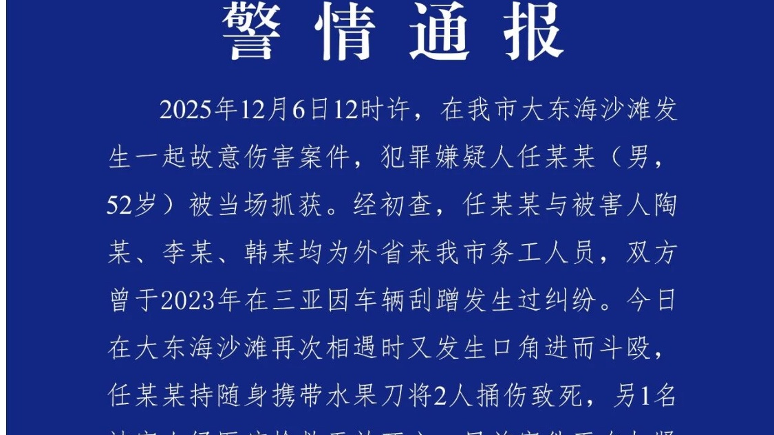 三亞警方通報(bào):一男子持刀致3死 犯罪嫌疑人已被抓獲