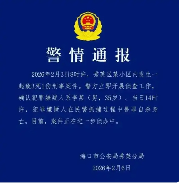 ?谑行阌^(qū)發(fā)生一起致3死1傷刑事案件 警方發(fā)布警情通報
