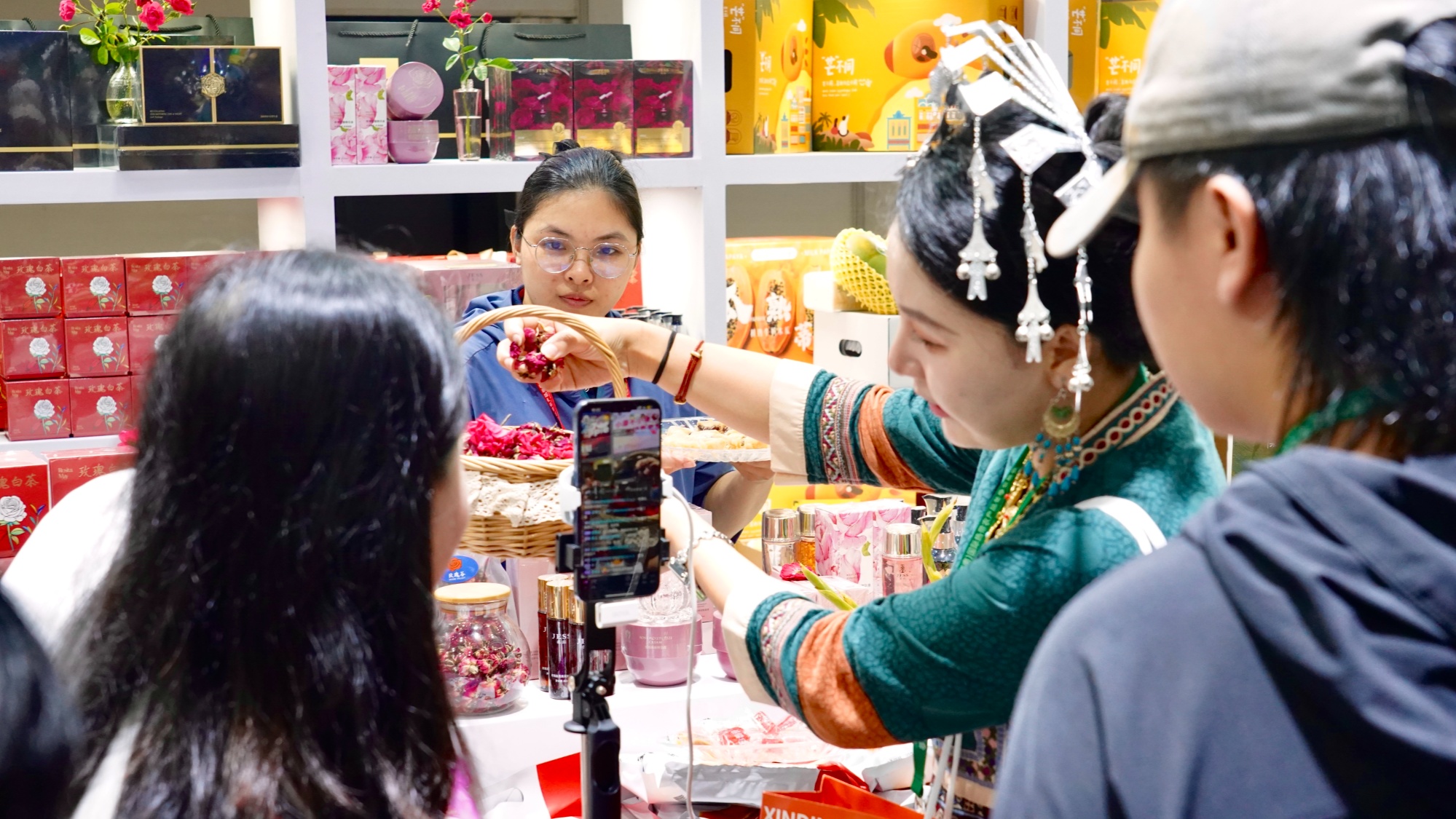 五指山展館憑借“年代記憶+民族文化+直播互動(dòng)”的農(nóng)文旅融合創(chuàng)新模式,成為全場最具人氣的打卡地之一。