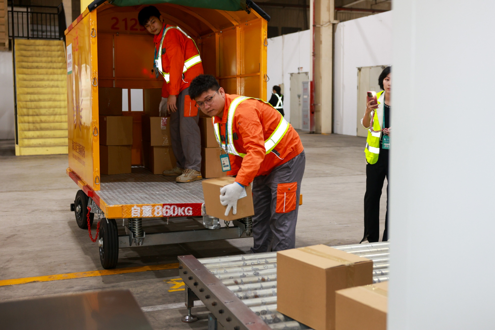 ?诿捞m國(guó)際機(jī)場(chǎng)“二線口岸”貨物在海關(guān)查驗(yàn)區(qū)過(guò)檢(央廣網(wǎng)發(fā) ?诿捞m國(guó)際機(jī)場(chǎng)供圖)