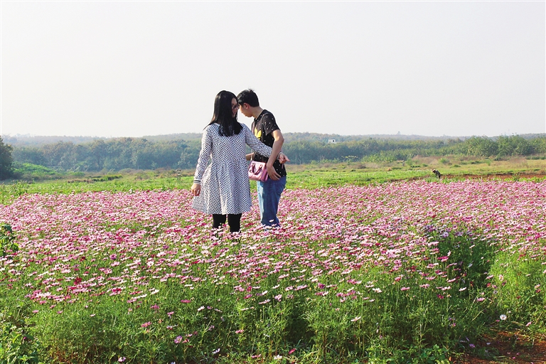 儋州屋基的格桑花花海,吸引游客觀賞。 海南日?qǐng)?bào)記者 易宗平 攝