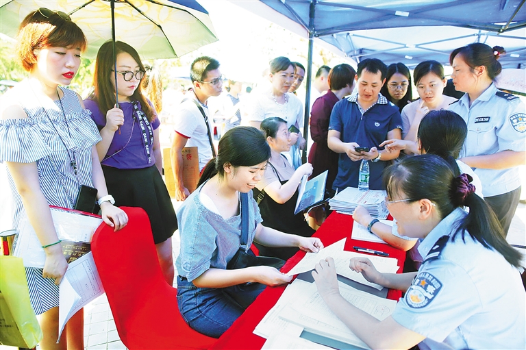 記者在活動(dòng)現(xiàn)場(chǎng)看到,因政府、企業(yè)提供便捷周到的服務(wù),辦理落戶非常高效,從提交材料到拿到準(zhǔn)遷證,最快一天就可以完成,公安部門還能提供送證上門服務(wù)。因看中海南未來(lái)的發(fā)展前景,不乏放棄“北上廣深”戶口來(lái)?诼鋺舻娜瞬拧