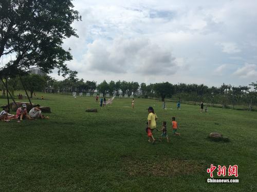 美舍河水環(huán)境治理好以后,如今,附近的人們已經(jīng)習(xí)慣來(lái)這片濕地公園上休閑放松,孩子們?cè)诓萜荷献分疰覒,不遠(yuǎn)處矗立著“綠水青山就是金山銀山”十個(gè)大字。