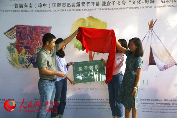 瓊中黎族苗族自治縣政府副縣長冷毅,木舍耕讀創(chuàng)辦人、“創(chuàng)意進村”計劃發(fā)起人秦加一為盒子書房揭牌