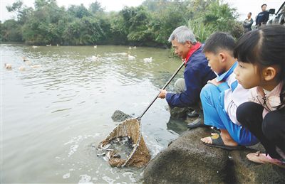 1月17日中午,?谑旋埲A區(qū)龍泉鎮(zhèn)美仁坡村委會購買500斤羅非魚苗,投放到定文村濕地魚塘,喂養(yǎng)12天前光臨此地的7只白鵜鶘。村里8支農(nóng)民護鳥隊盡職盡責24小時看護,希望白鵜鶘在此地繁衍生息。