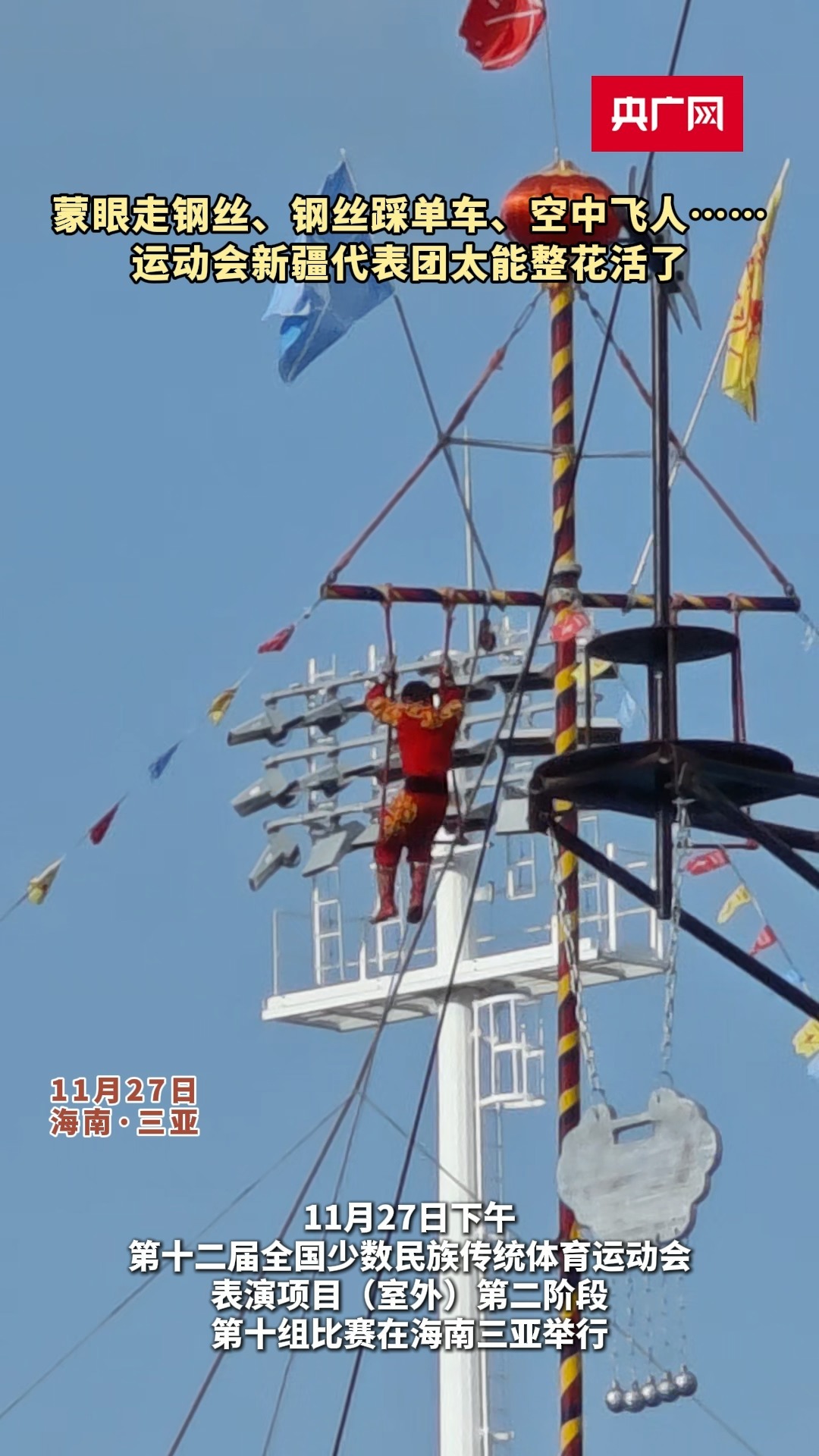 蒙眼走鋼絲、鋼絲踩單車、空中飛人……新疆代表團(tuán)太能整花活了