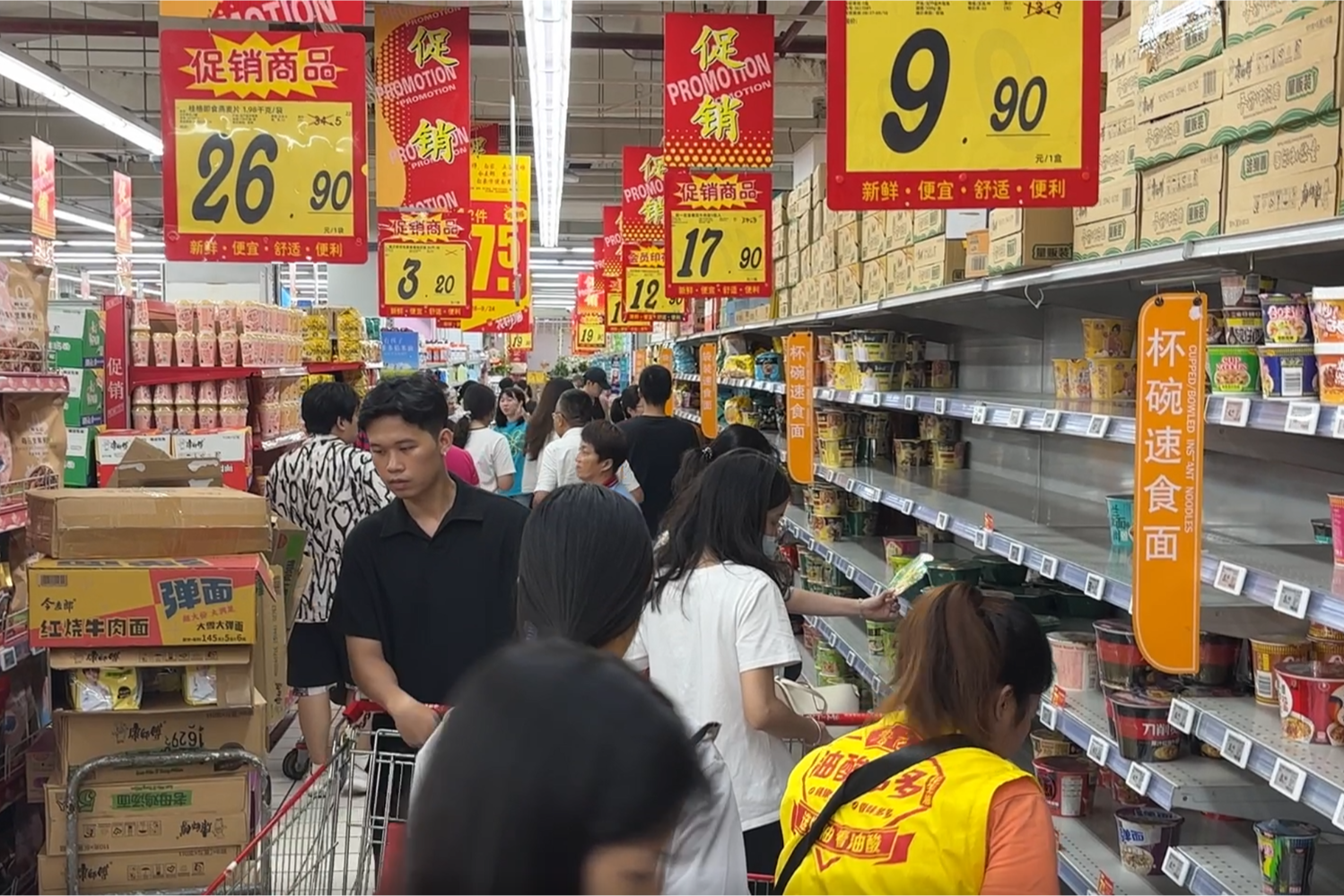 臺(tái)風(fēng)“摩羯”來(lái)襲 ?谑袌(chǎng)商超物資供應(yīng)充足