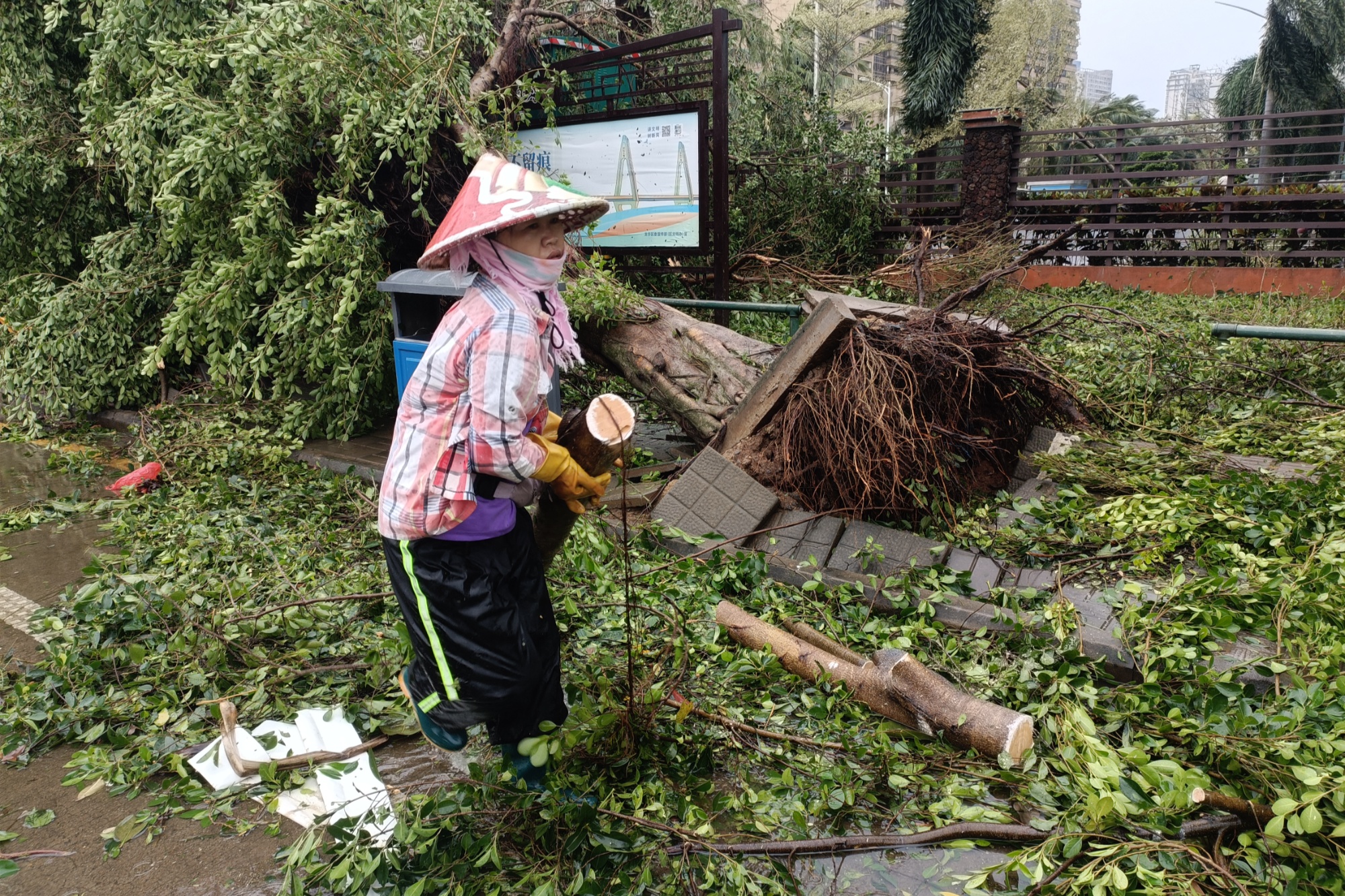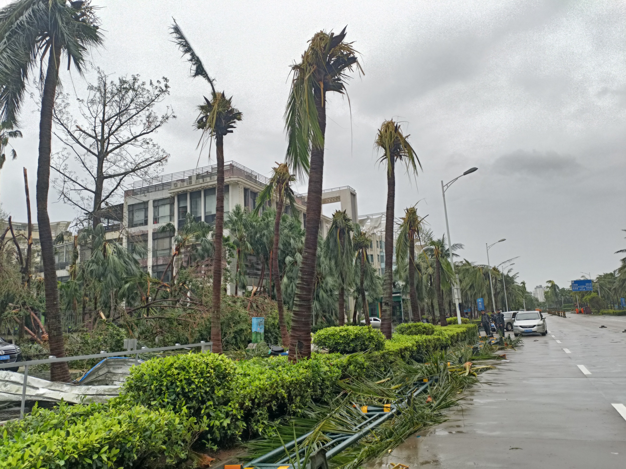 臺(tái)風(fēng)“摩羯”過(guò)境后,?诮值罎M目瘡痍。