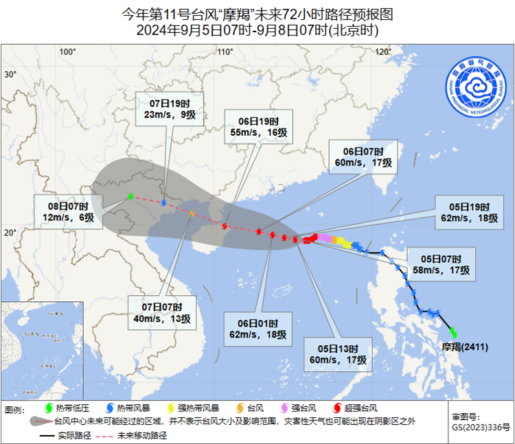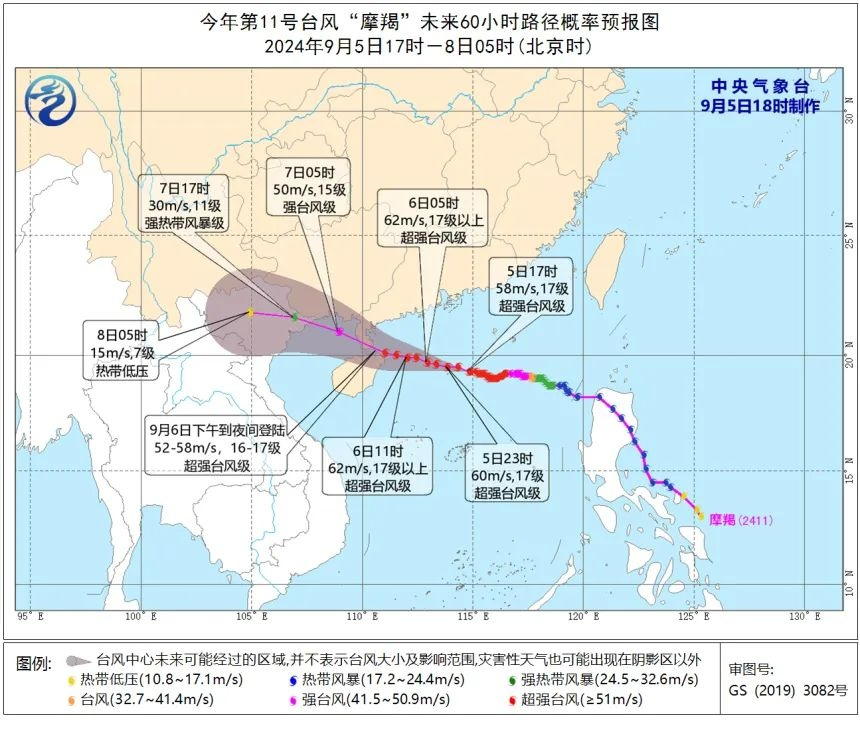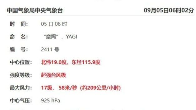 最新!超強(qiáng)臺(tái)風(fēng)“摩羯”將于9月6日下午到夜間在海南瓊海到廣東電白登陸