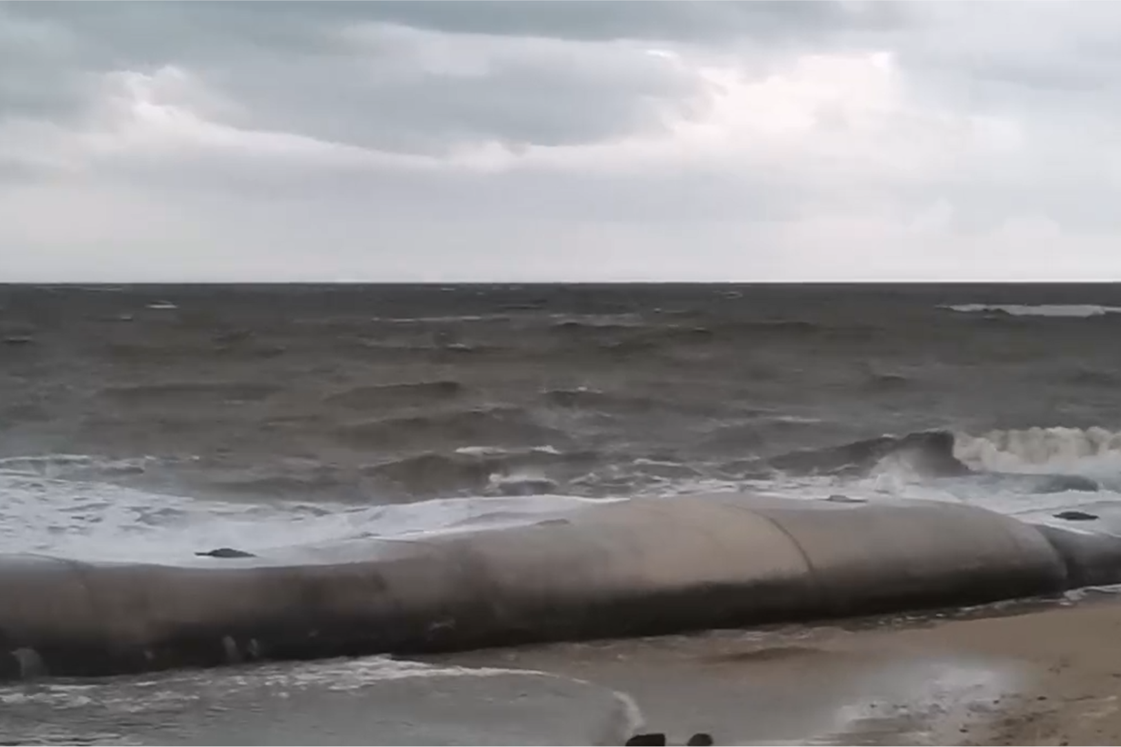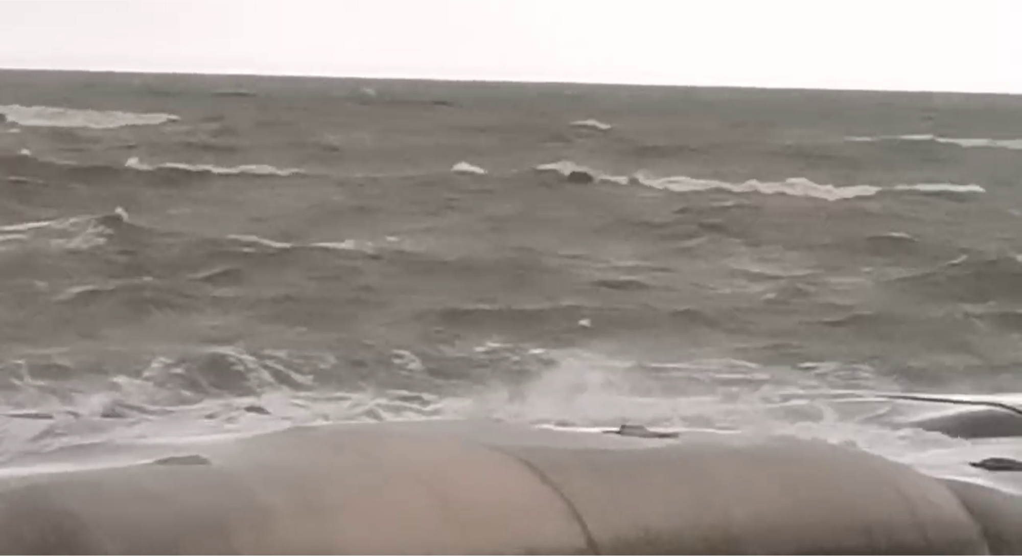 記者在海邊看到巨浪翻滾、狂風(fēng)驟雨。