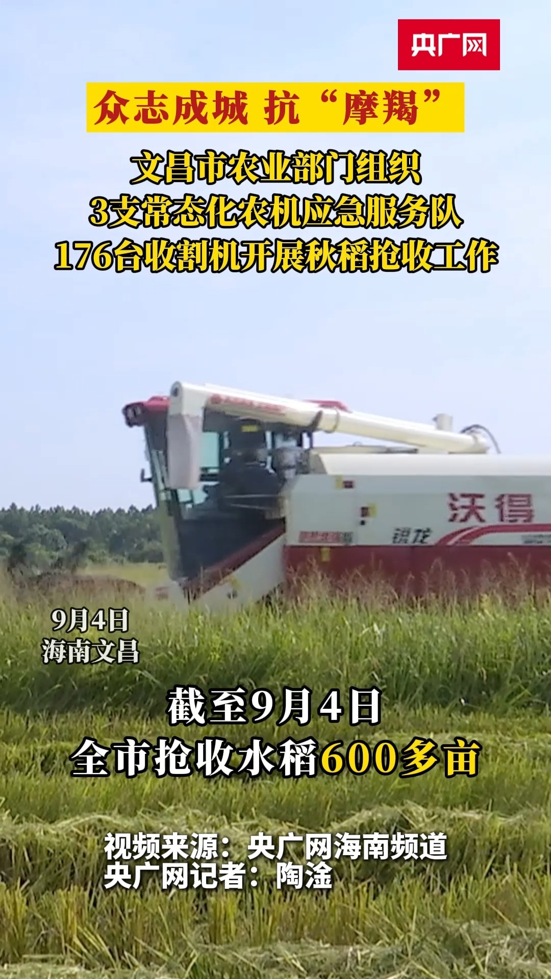 防范應(yīng)對臺風(fēng)“摩羯” 海南文昌搶收水稻600多畝