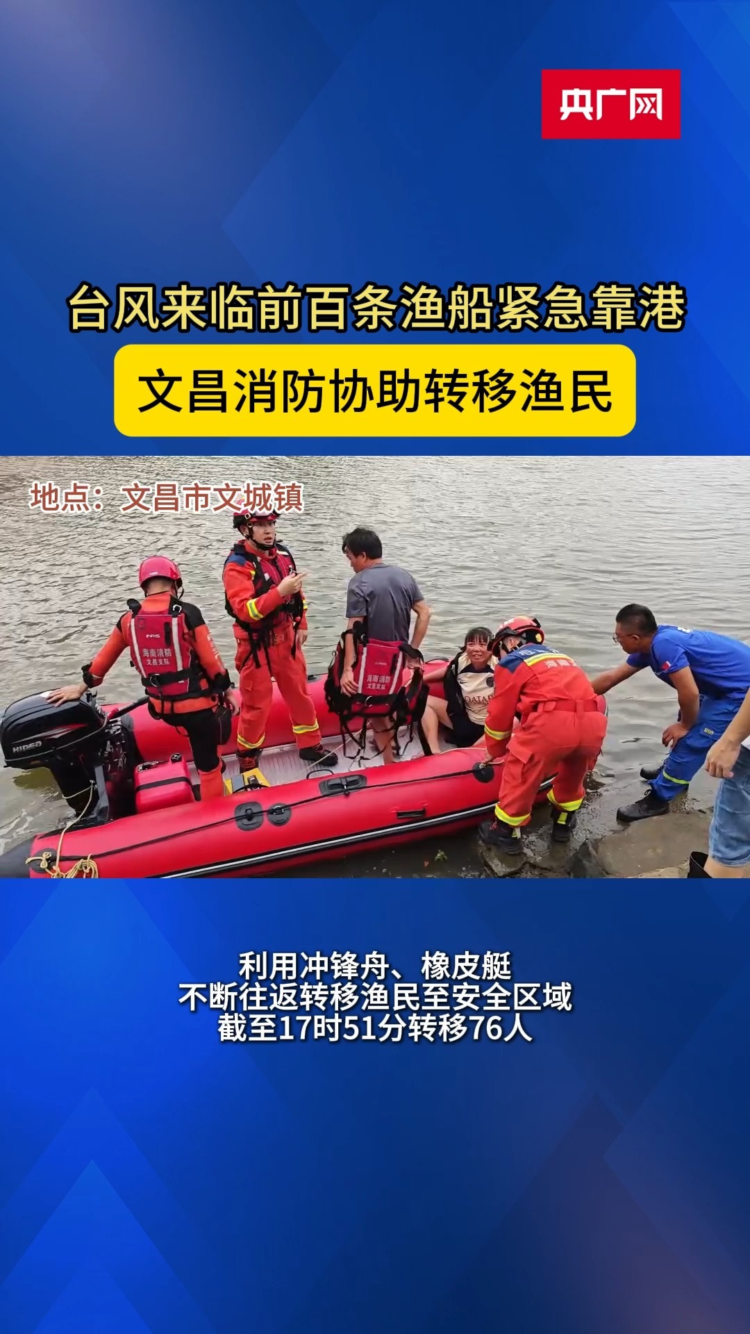 臺風(fēng)來臨前百條漁船緊急靠港 文昌消防協(xié)助轉(zhuǎn)移漁民