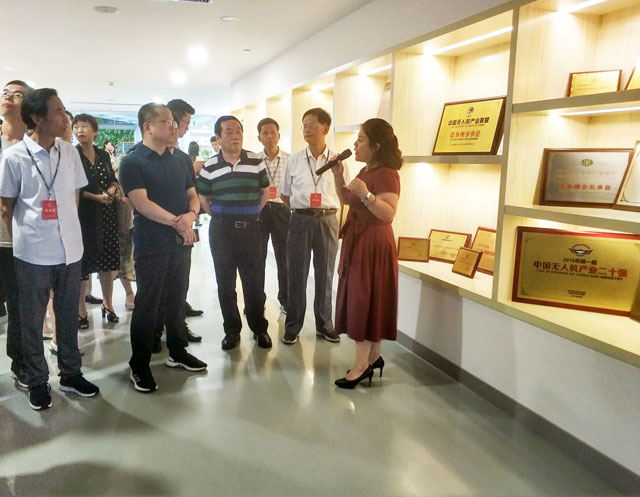 隨后,代表參觀了天鷹兄弟無人機展廳、企業(yè)文化墻等,并觀看了天鷹兄弟植保無人機作業(yè)視頻,F場負責人張思玲為大家詳細介紹了天鷹兄弟自成立以來發(fā)展歷程以及獲得的多項榮譽,代表們對天鷹兄弟企業(yè)創(chuàng)新創(chuàng)業(yè)發(fā)展成果以及在農業(yè)植保無人機領域做出的突出成績給予高度的評價。