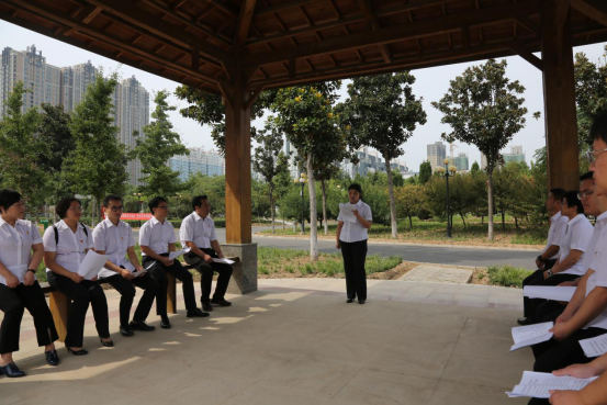 參觀結束后,鄭州新區(qū)支行黨支部來到中原英烈館西側的廊亭下,召開了“緬懷革命先烈、提振攻堅精神”主題黨日專題座談會。由黨員代表結合主題教育開展以來的學習情況,及主題黨日活動,談談自己的心得體會。同志們都認為主題教育開展以來,對自身的學習起到了很好的促進推動作用,尤其是主題黨日活動,通過緬懷革命先烈的英雄事跡,滌除污垢,純化自己的初心,強化自己的使命擔當。